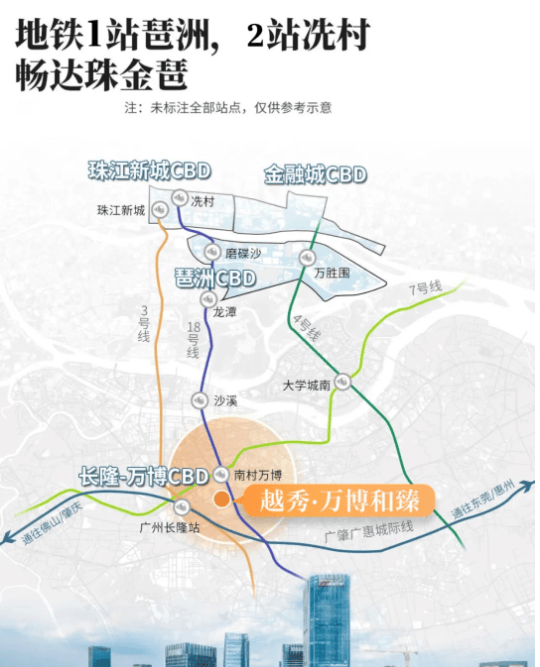 此外,项目首发组团CBD组团F1-2地块位于锦绣喷鼻江别墅群正两头,超14m南向面宽让采光通风拉满;越秀·万博城和臻紧邻地铁7号线号线。
